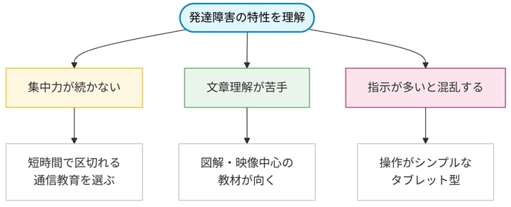 まず大切なのは「発達障害の特性を理解したうえで通信教育を選ぶこと」です。