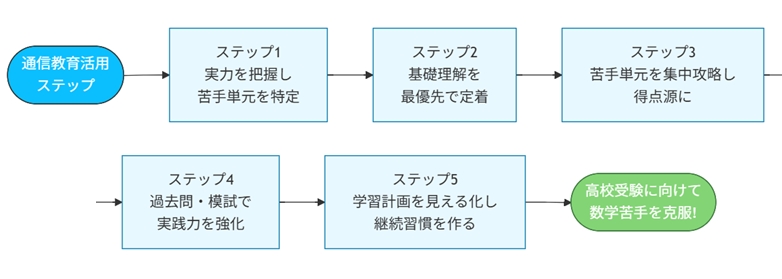 ここでは、数学が苦手な子でも確実に力をつけられる通信教育の活用ステップを、順を追ってご紹介します。